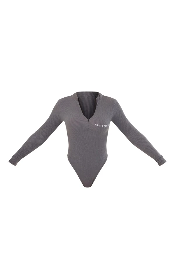 PRETTYLITTLETHING Body gris anthracite côtelé crêpé à demi-zip