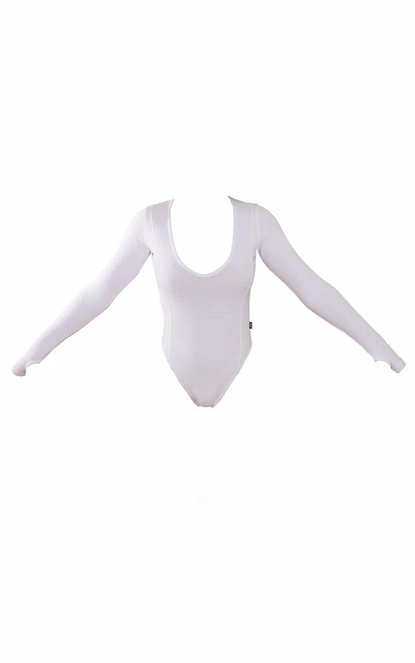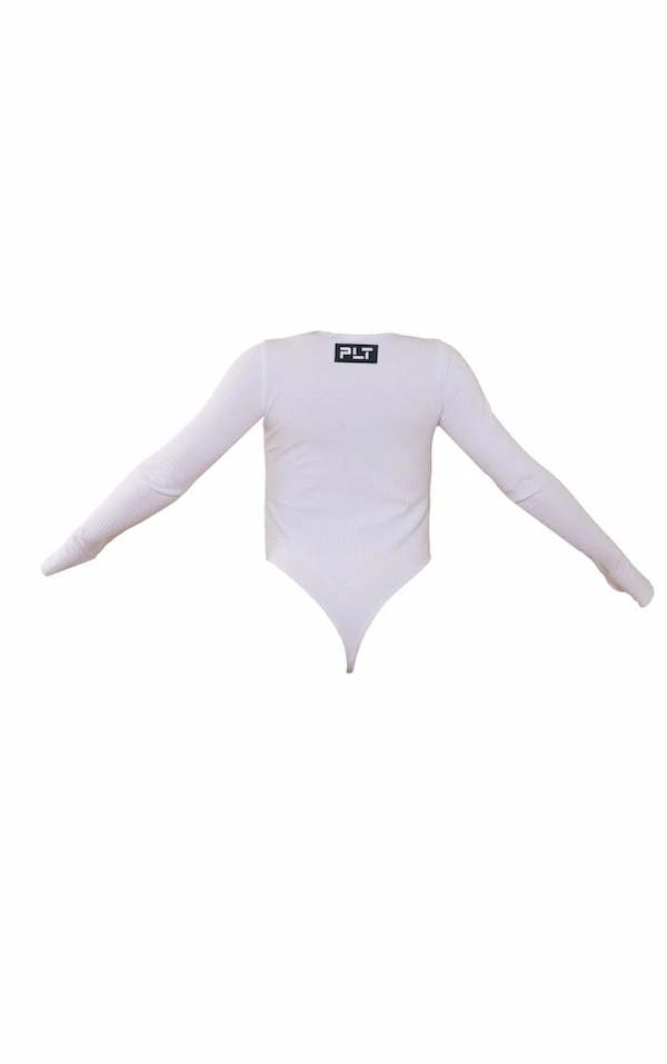 PRETTYLITTLETHING Body côtelé blanc à badge et décolleté