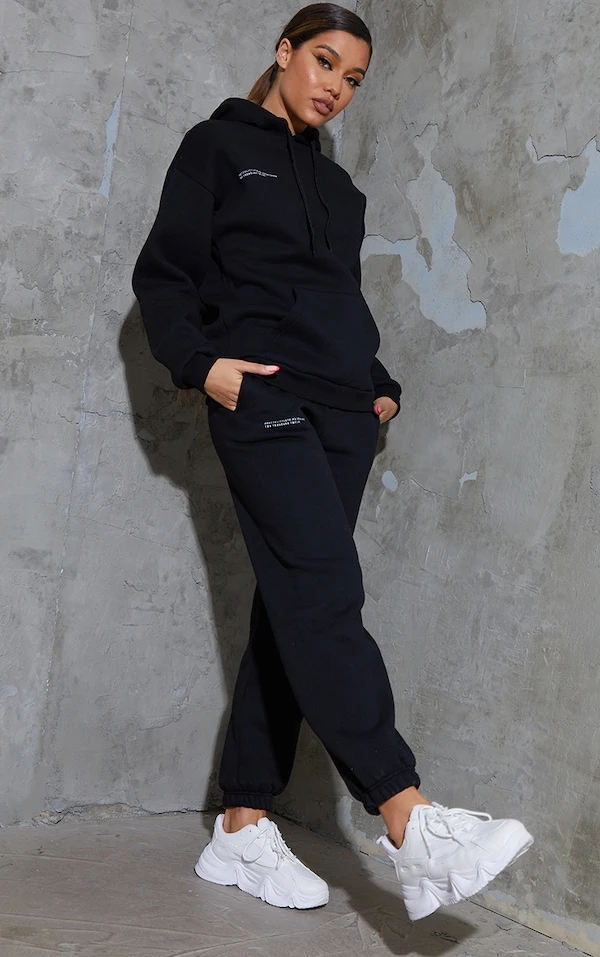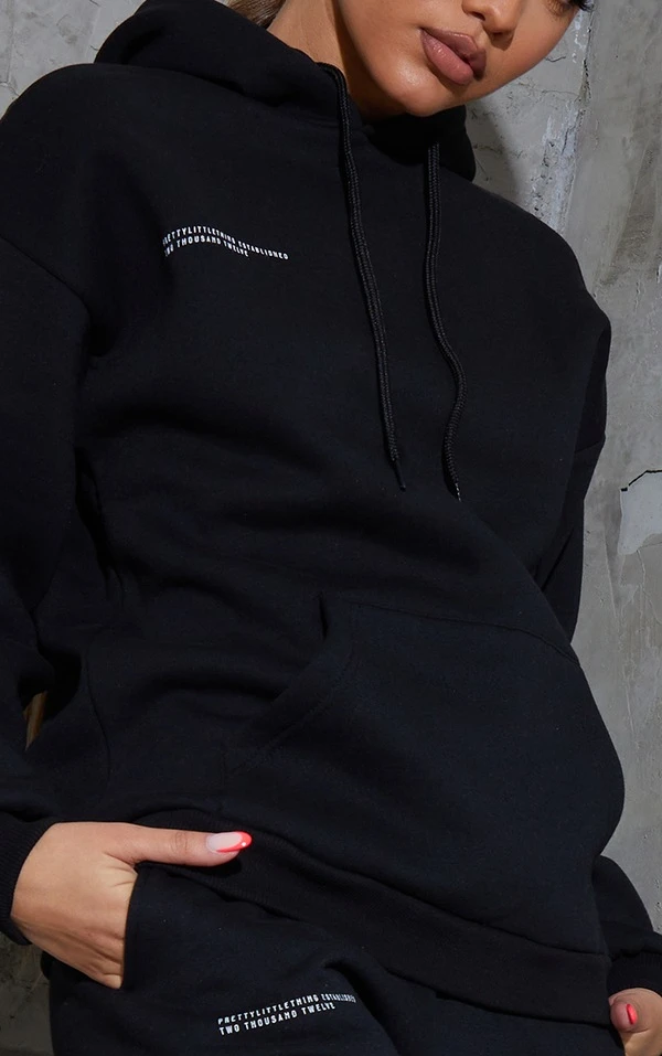PRETTYLITTLETHING Hoodie noir profond à slogan Est 2012