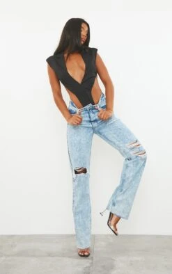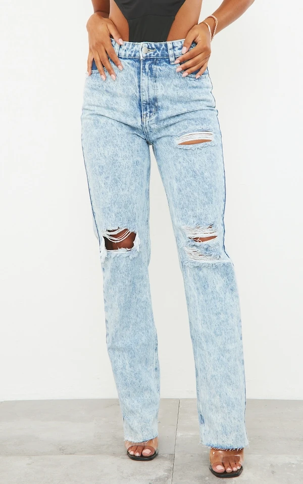 PRETTYLITTLETHING Jean droit déchiré délavage blanchi coupe longue
