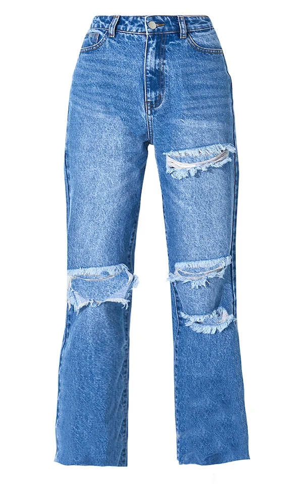 PRETTYLITTLETHING Jean droit déchiré moyennement délavé coupe longue