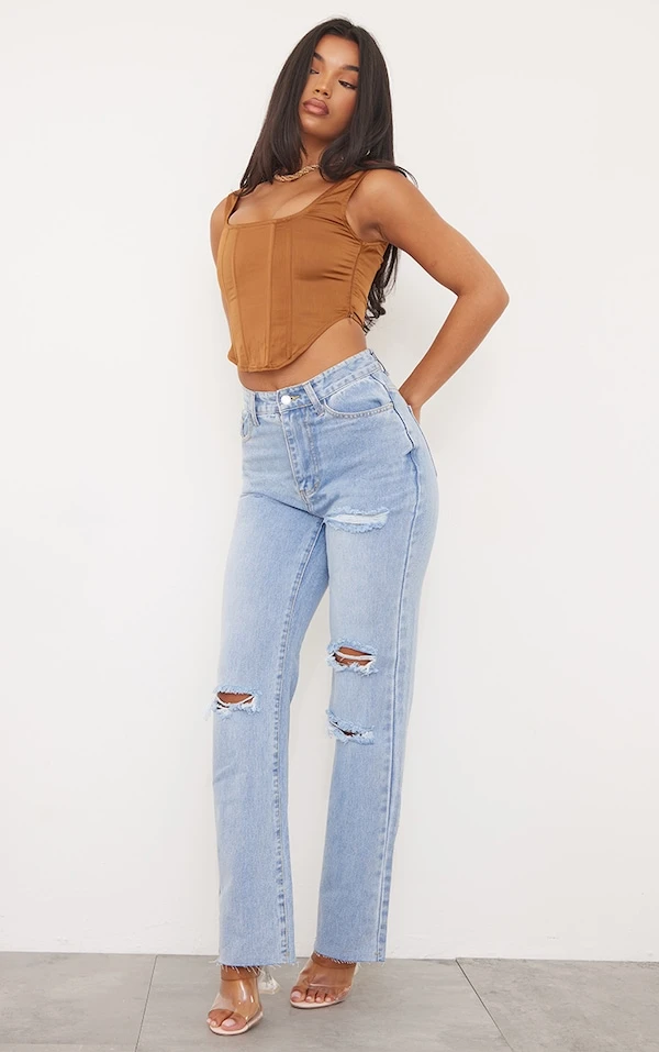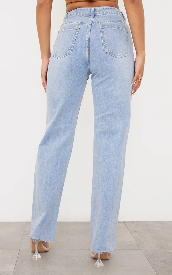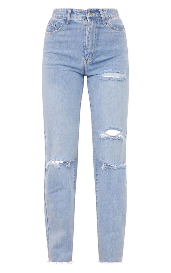 PRETTYLITTLETHING Jean droit déchiré très délavé coupe longue