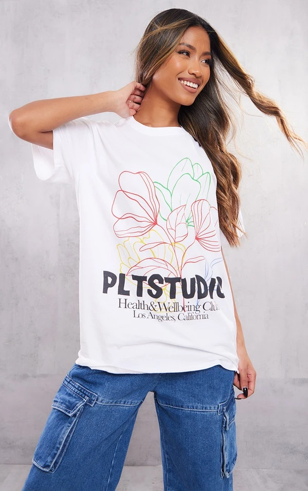 PRETTYLITTLETHING T-shirt blanc imprimé « Studio »