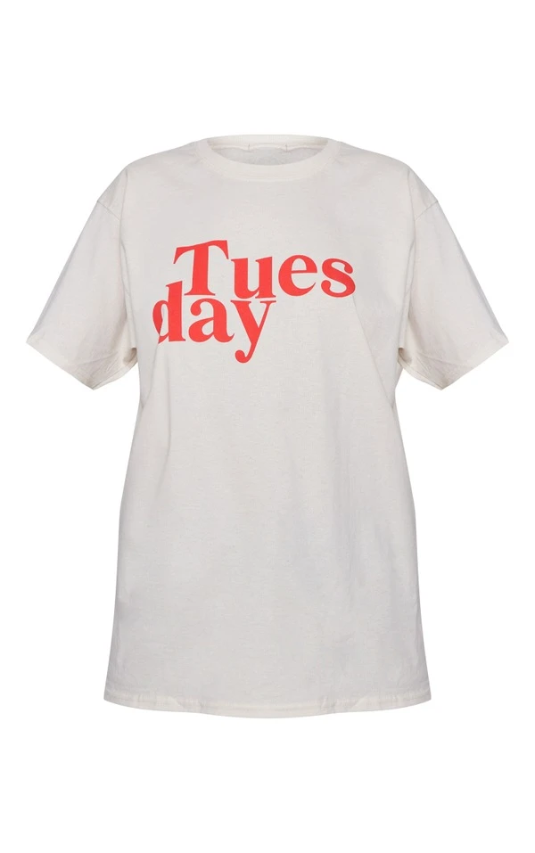 PRETTYLITTLETHING T-shirt crème imprimé Tuesday