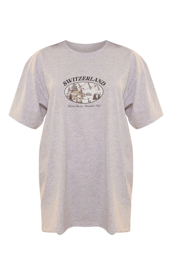 PRETTYLITTLETHING T-shirt gris à mini slogan Switzerland