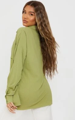 Corset Kaki En Maille Ă Bordure De Strass Et Manches Longues
