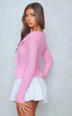 Top Long En Jersey Sable à Manches Longues Et Dos échancré