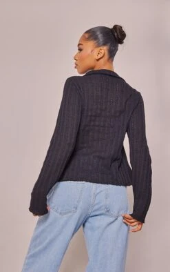 Top Côtelé Large Gris Pierre à Col Montant Et épaule Découpée