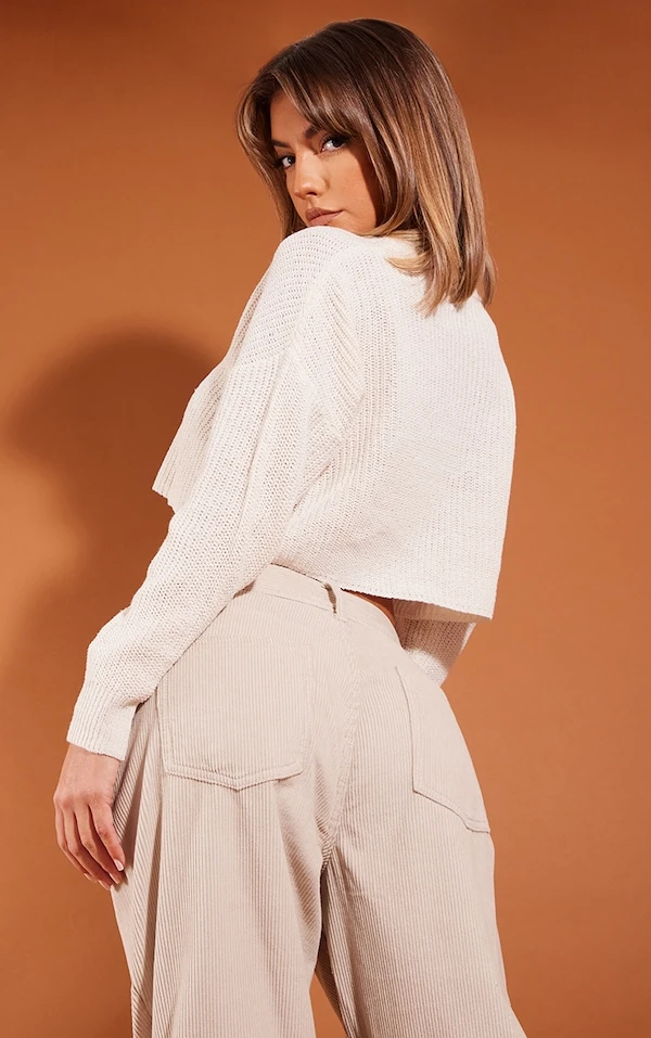 Un vrai nuage de douceur ce petit pull ! On adore sa coupe courte basique, son coloris crème et son col ras. Il ne manque plus qu’un pantalon de la même couleur et des talons !