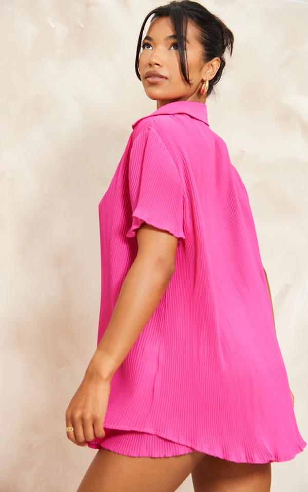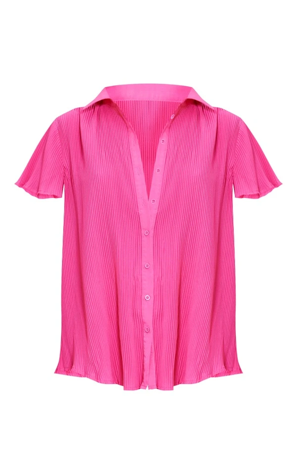 Shape Chemise oversize plissée rose vif à manches courtes et boutons