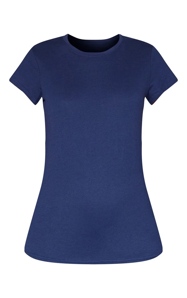 Canon le bleu marine ! Sur ce tee-shirt cintré à la coupe minimale, c’est impossible de résister. On l’associe à un short en jean et une paire de baskets !