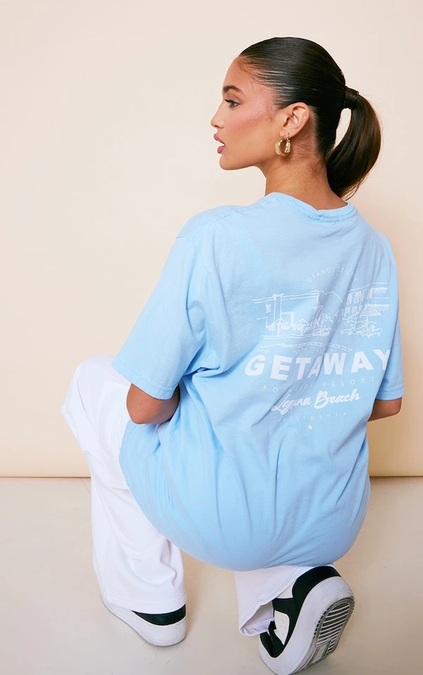 T-shirt bleu ciel à imprimé Get Away County au dos
