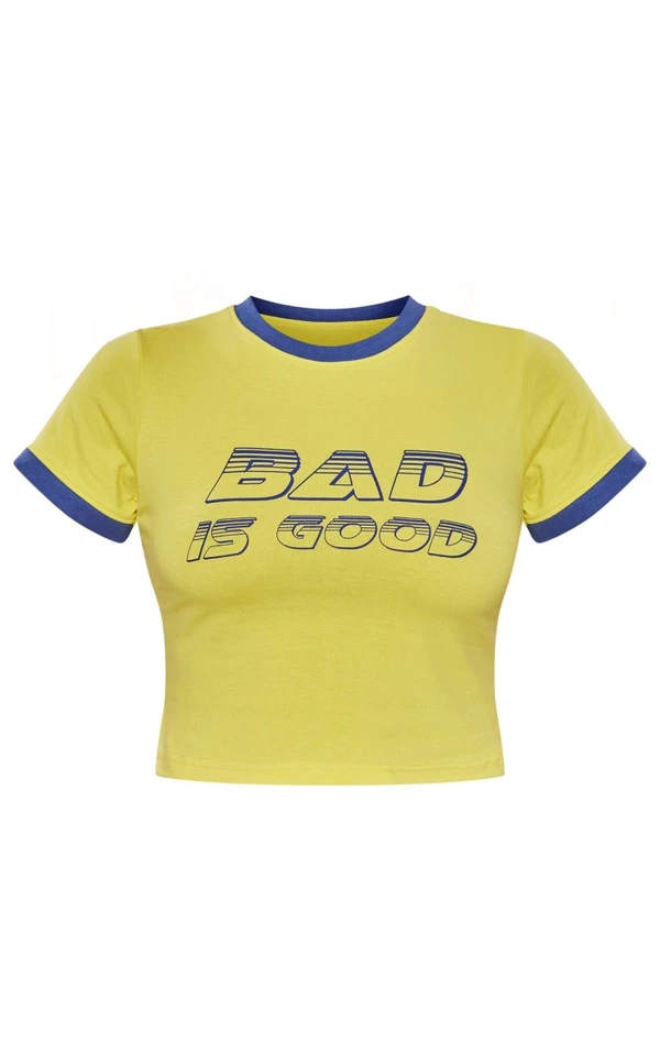 T-shirt court ajusté jaune à imprimé Bad Is Good