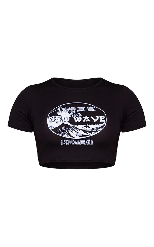 T-shirt court noir à imprimé New Wave