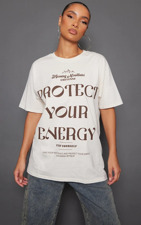 Trop stylé le t-shirt ! Son coloris gris pierre est super doux et on adore son imprimé Protect Your Energy sur le devant et sa coupe oversize très cosy. Plus qu’à enfiler un cargo en nylon et des baskets. Trop belle.