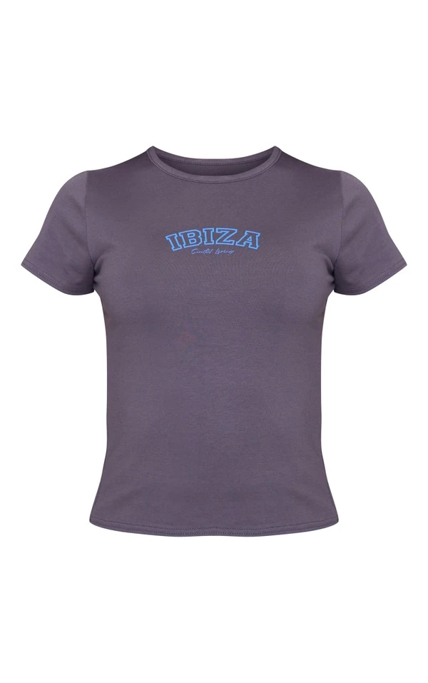 T-shirt long ajusté bleu acier à imprimé Ibiza