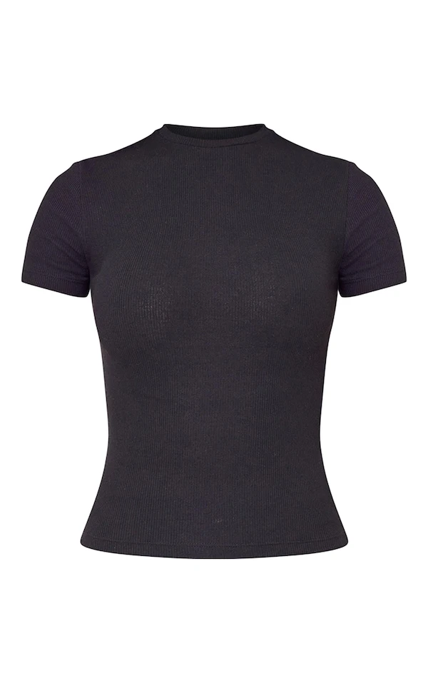 T-shirt noir côtelé à manches courtes