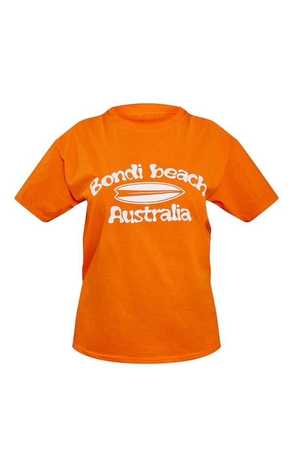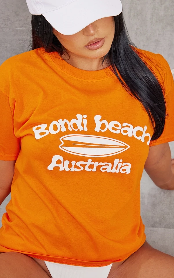 La couleur orange de ce t-shirt vous va si bien au teint ! En plus, son design à imprimé Bondi Beach nous donne envie d’aller en vacances. Portez-le avec un petit short en jean et une paire de baskets blanches pour un look 100% validé. Trop simple pour vous !