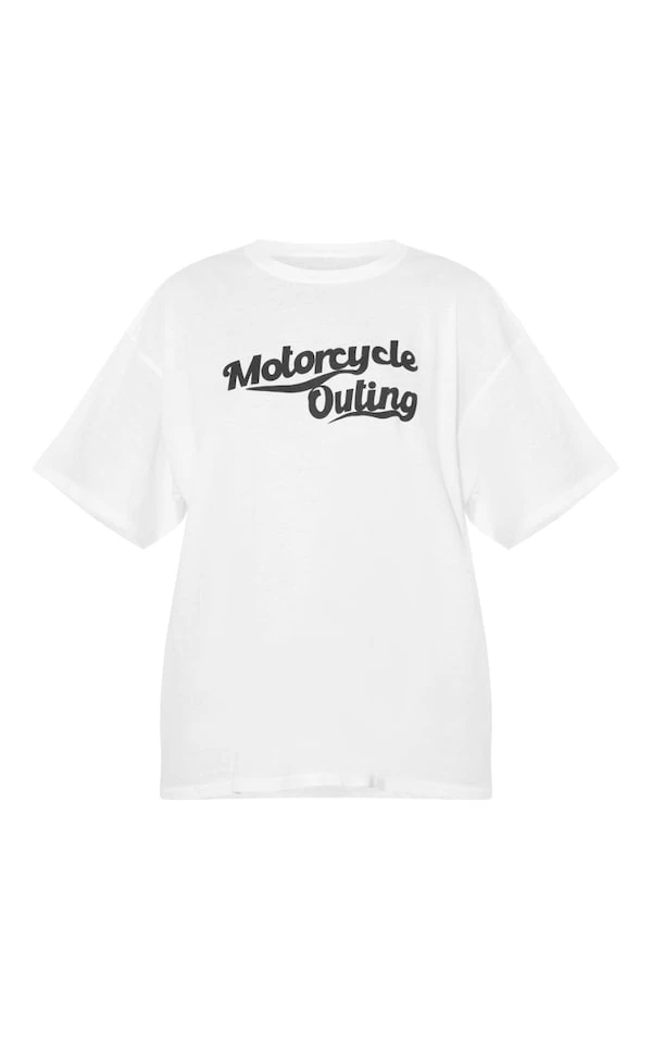 T-shirt oversize blanc imprimé Motorcycle Outing