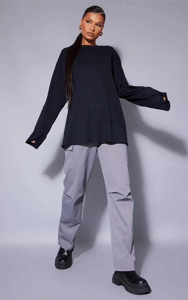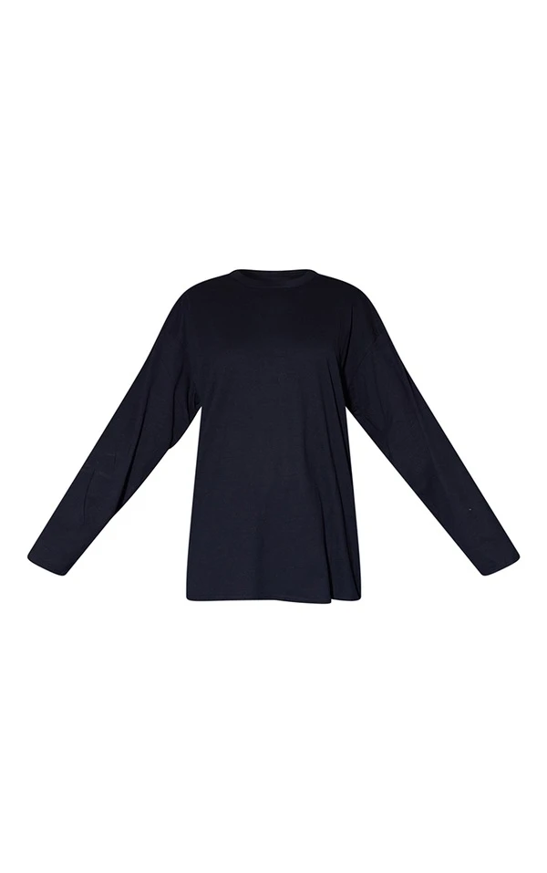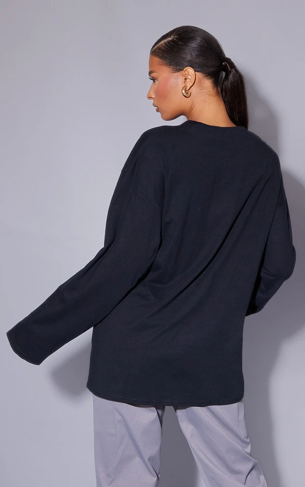 T-shirt oversize style boyfriend en coton biologique noir à manches longues
