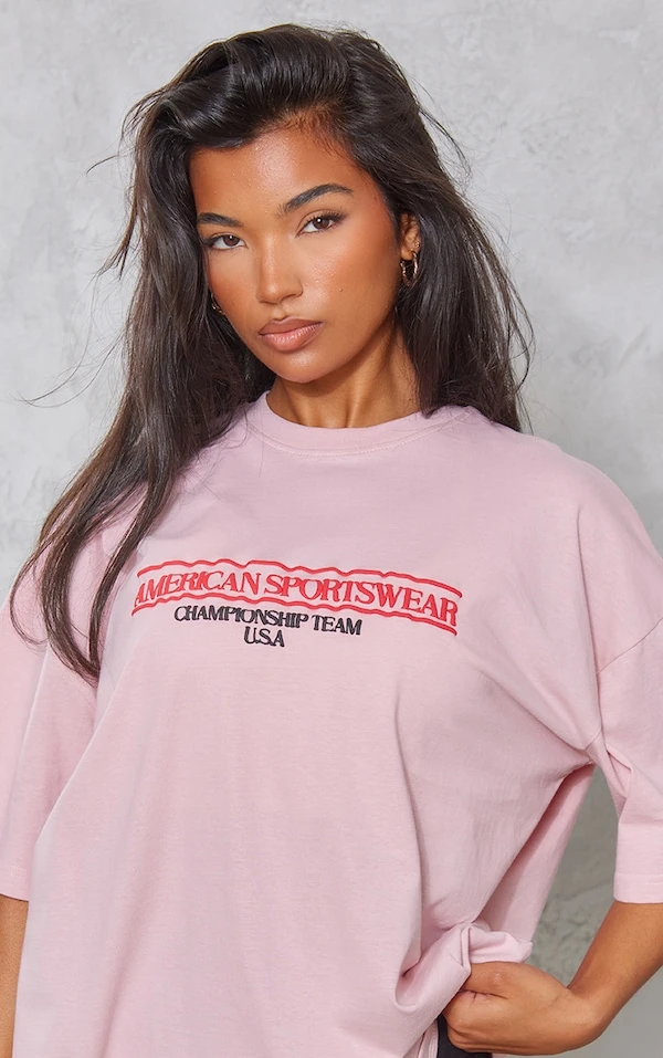 T-shirt rose clair à imprimé American Sportswear en relief