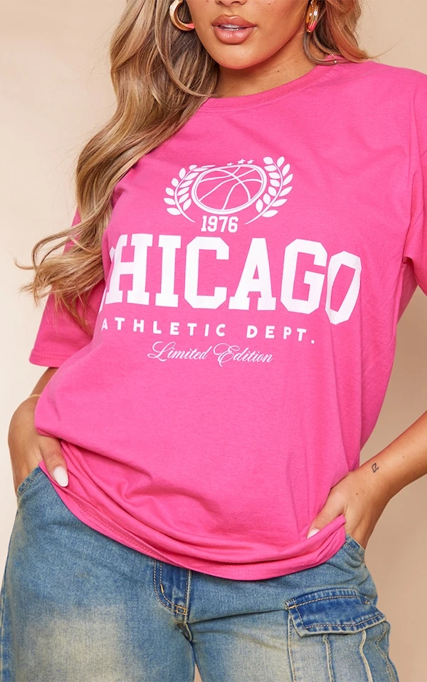 Trop beau, ce t-shirt. On est sous le charme de sa couleur rose vif et de son slogan « Chicago » imprimé en grosses lettres sur le devant. Porté avec un jean et une paire de baskets, ce t-shirt vient ajouter de la couleur à votre look casual du jour. Vous avez un don pour la mode, vous !
