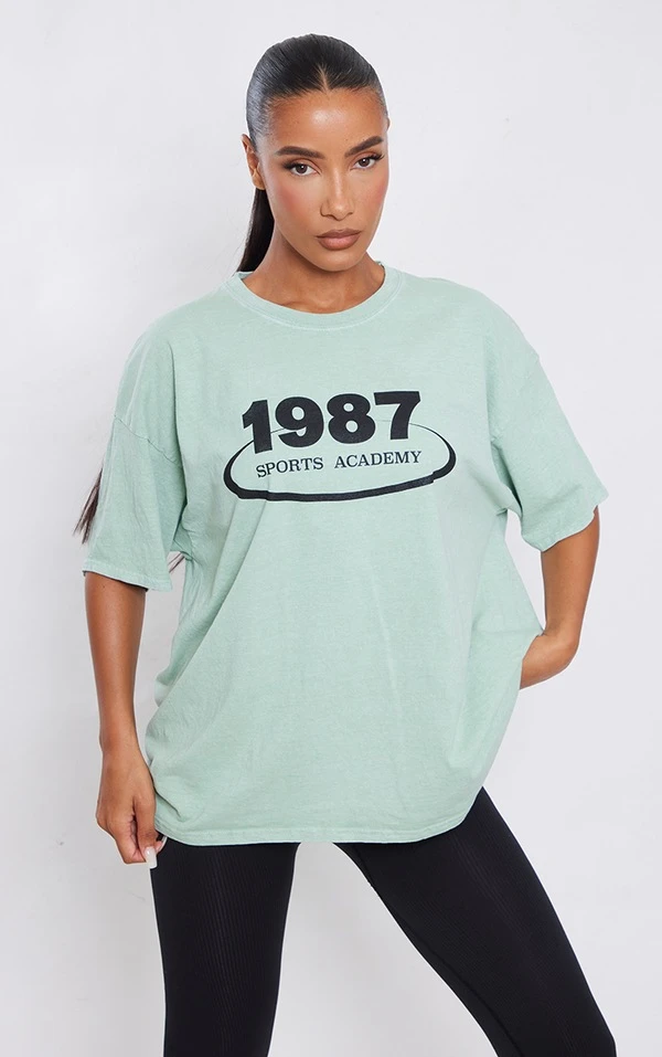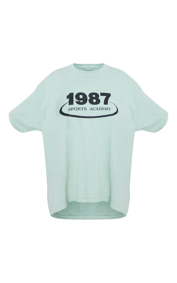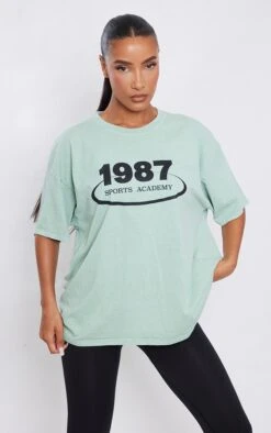 T-shirt vert sauge délavé imprimé 1987 Sports Academy